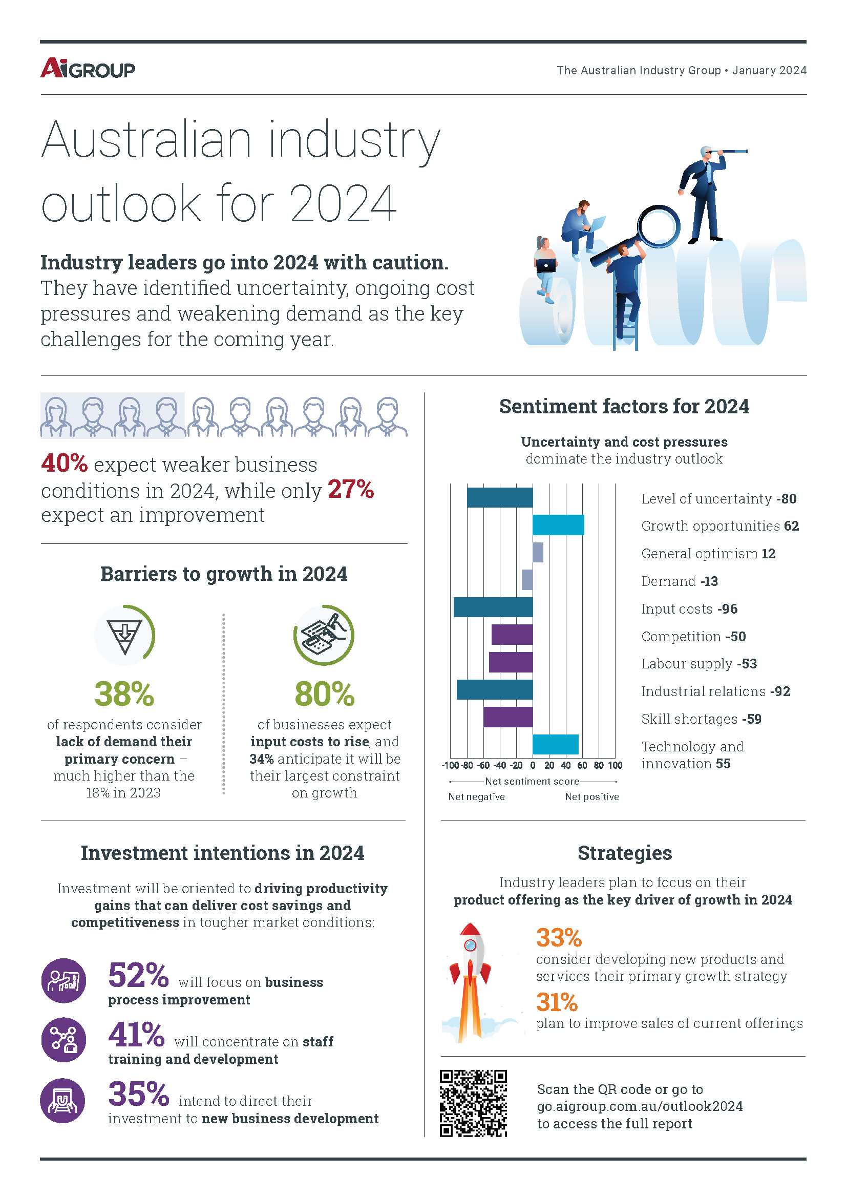 Australia’s industry leaders go into 2024 with significantly more caution and concern than the year before. They expect business conditions and performance to be mediocre, and well below the strong results of 2022 and 2023.